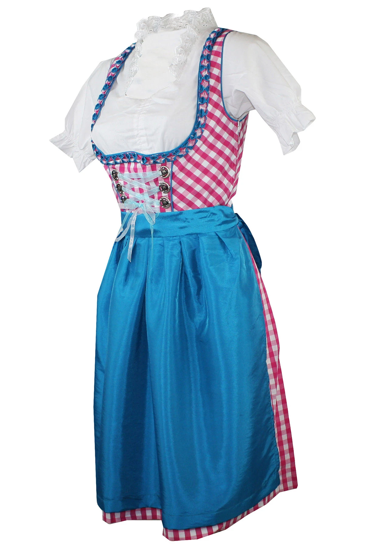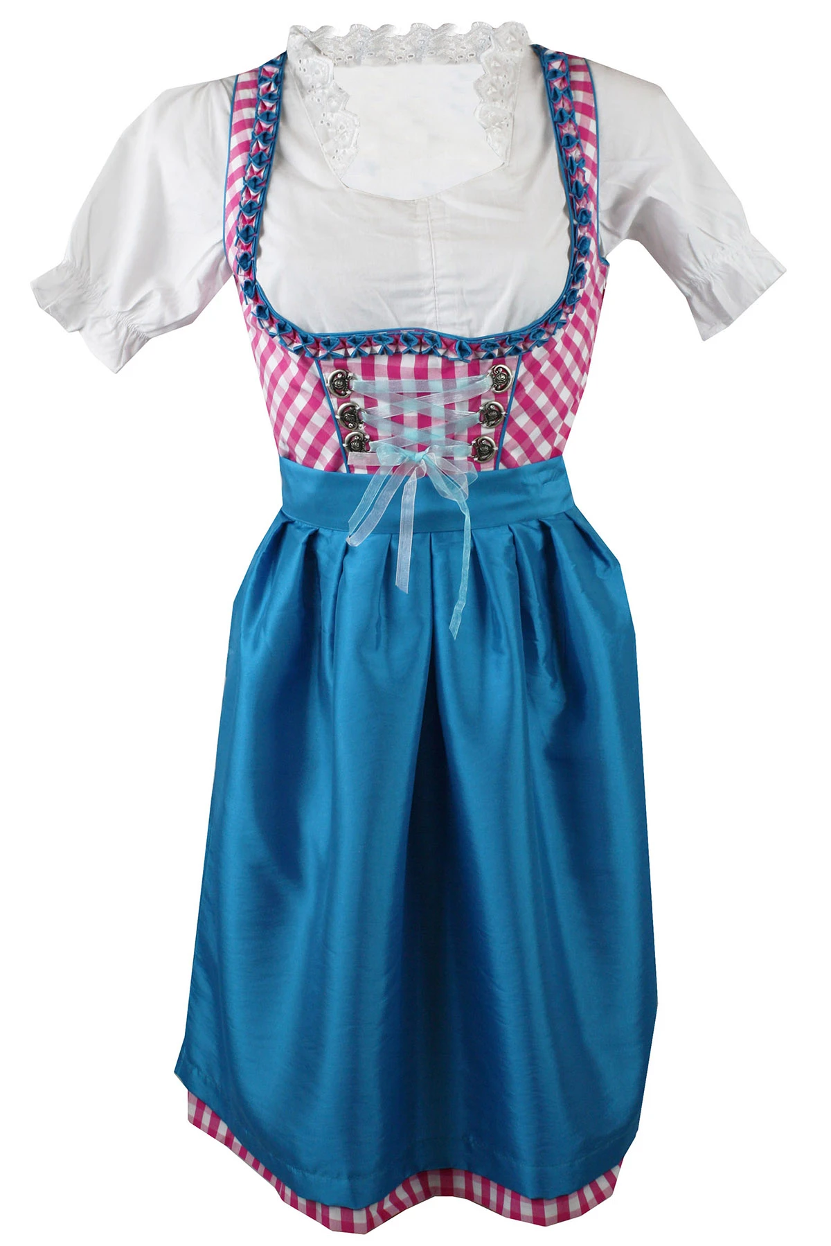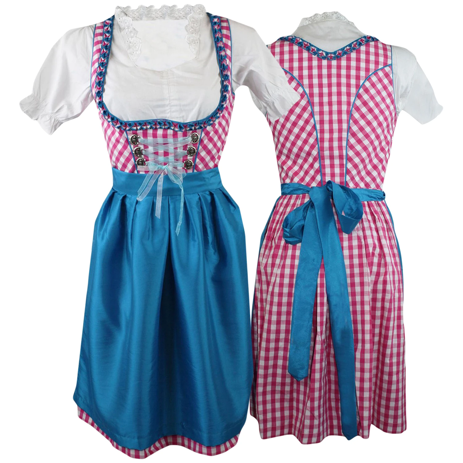 - Das Kleid an sich ist Pink kariert mit 6 Broschen versehen