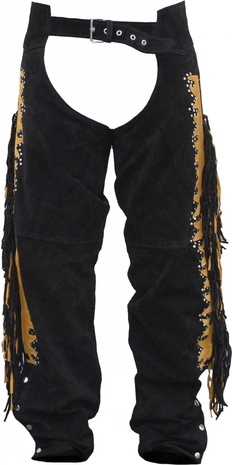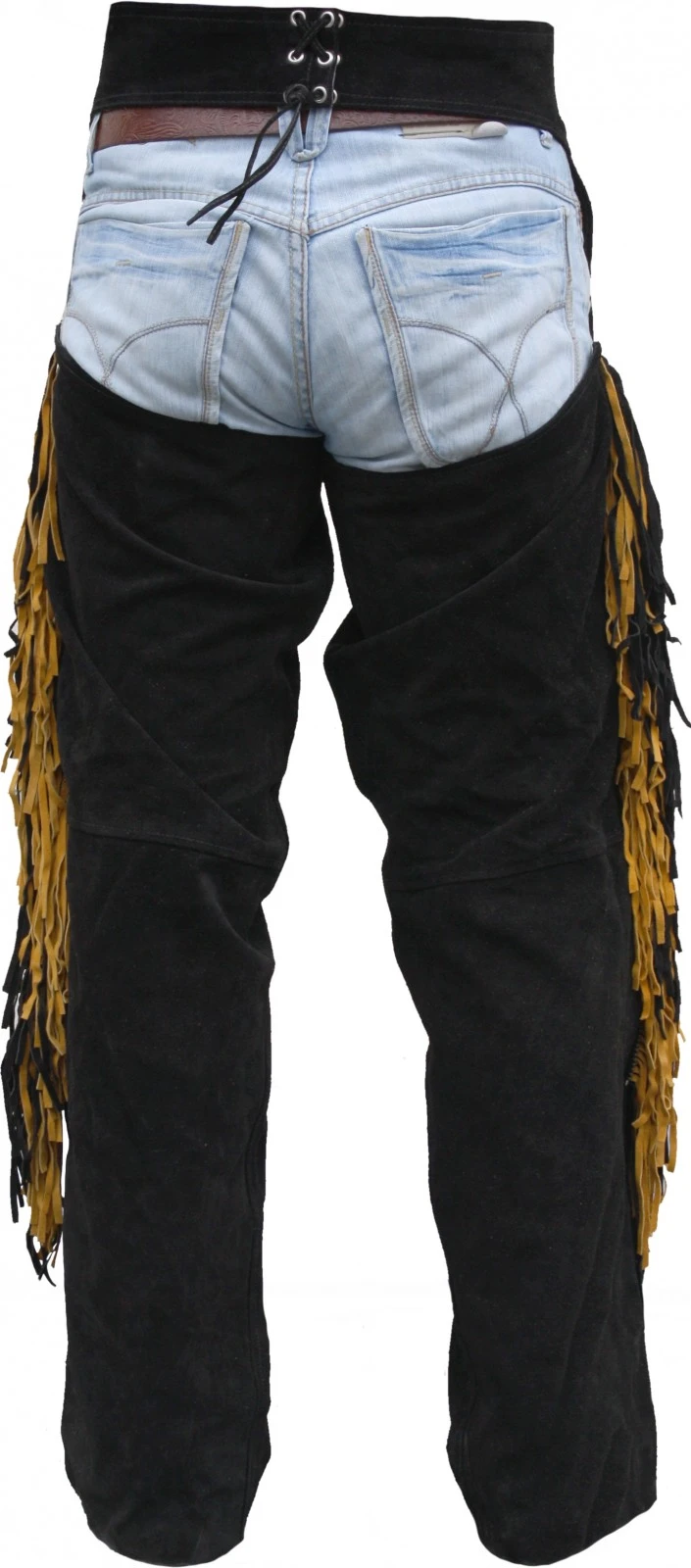 Western-Lederchaps im Indianer-Look, aus echtem Rindsleder, Farbe Schwarz