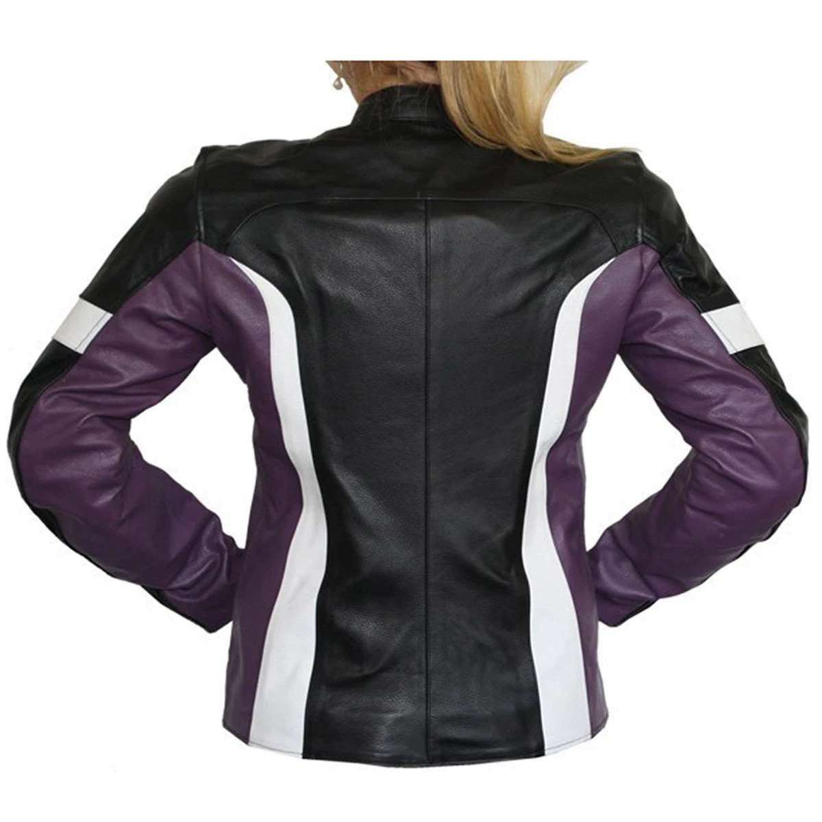 Damen Lederjacke Motorradjacke aus Rindsleder Kombijacke, Farbe: Rot, Rosa, Lila/Schwarz/Weiß