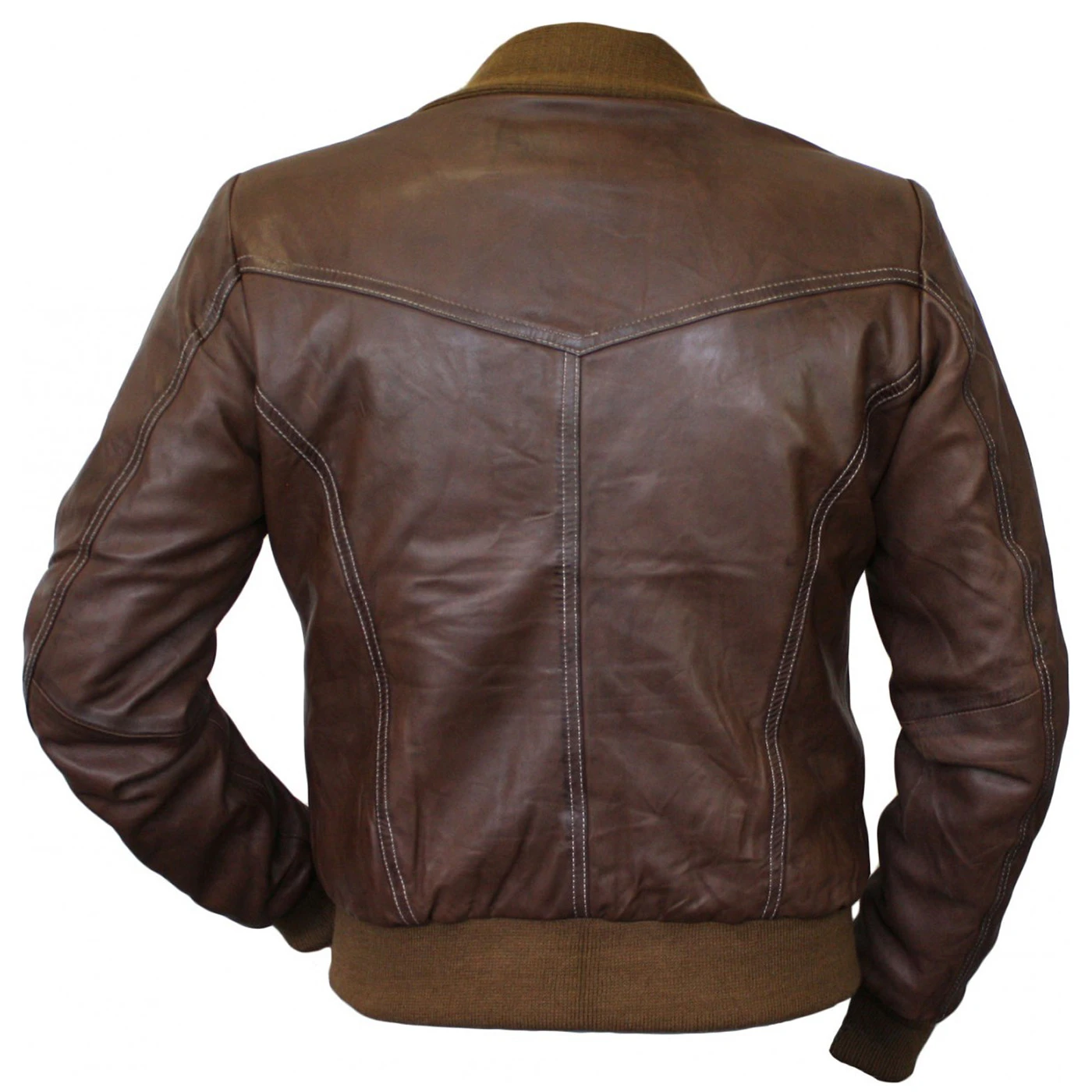 - Weiße Nähte die im Kontrast zur Lederfarbe stehen verleihen der Jacke einen dezenten, klassischen Look