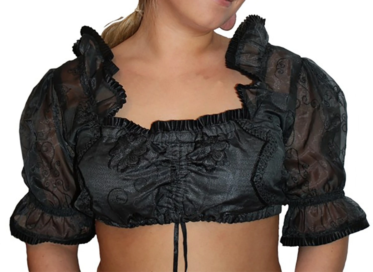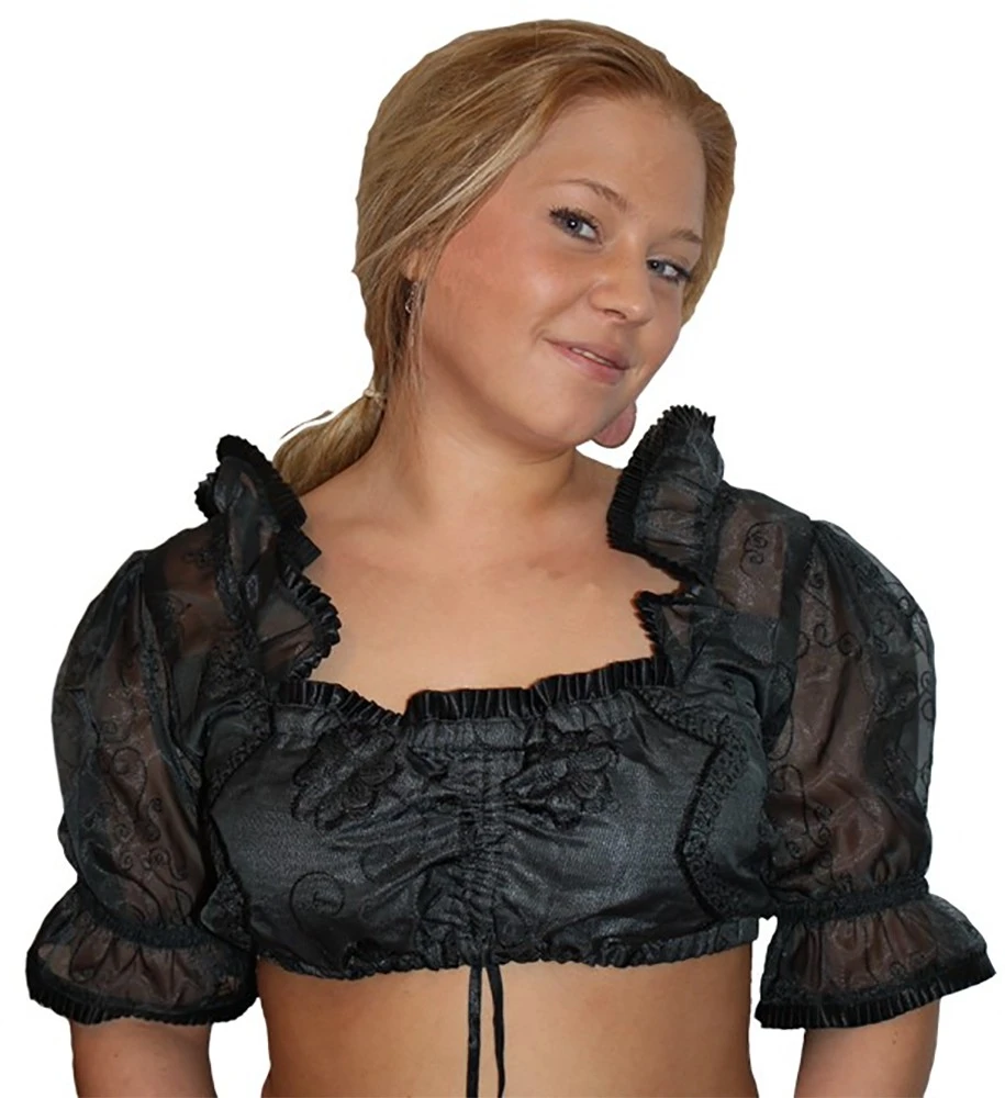 Dirndlbluse (Bustierbluse) aus feinstem Polyesterstoff, Transparent, in der Farbe: Schwarz