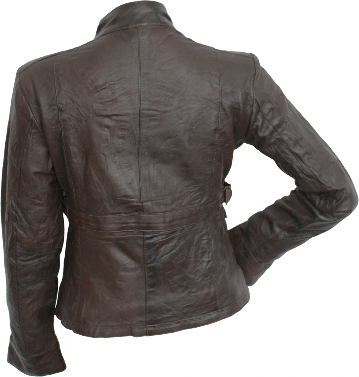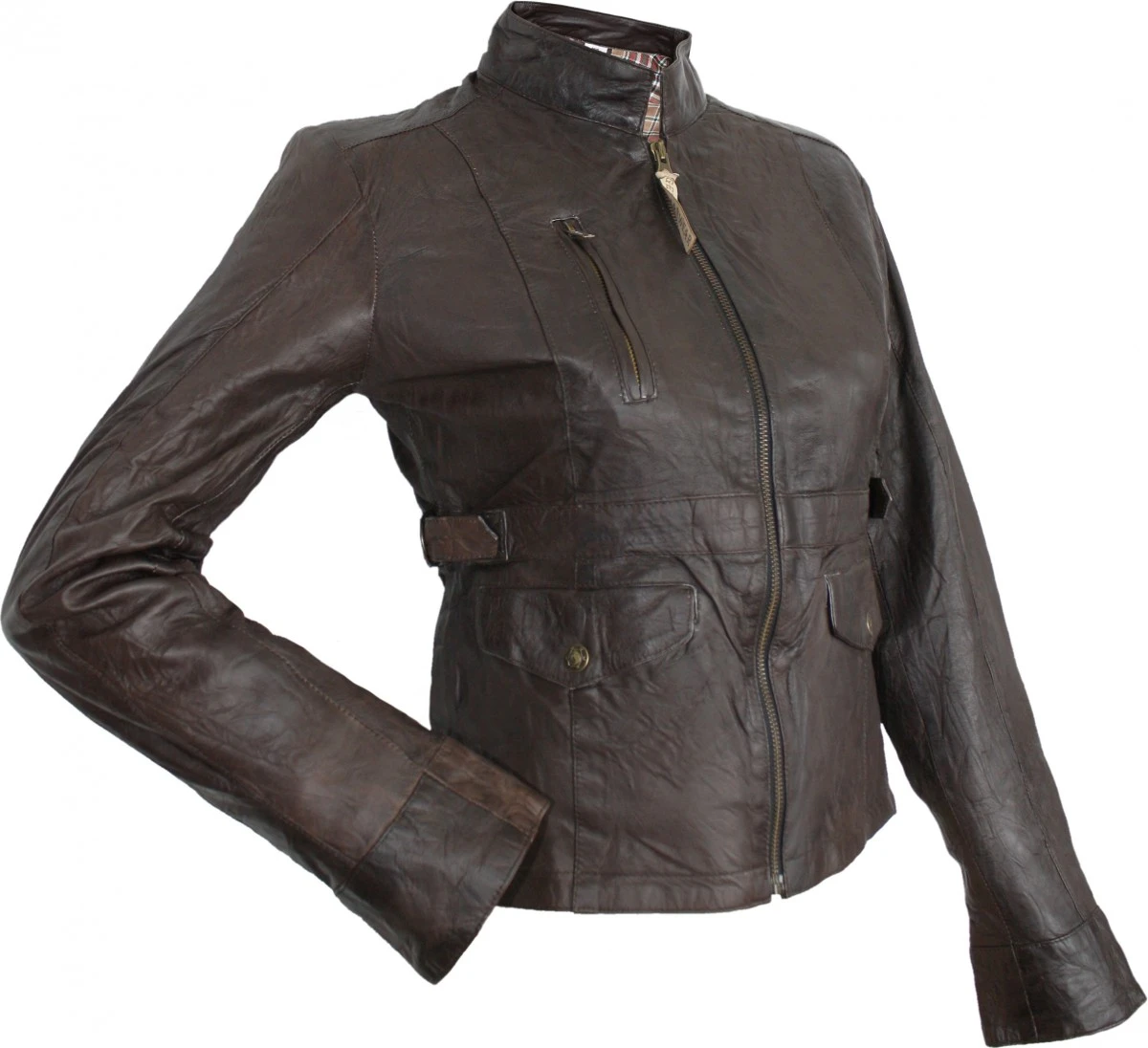 Damen Lederjacke aus lammnappa/echtleder Antikleder, modischer Knitterlook,Farbe: Braun