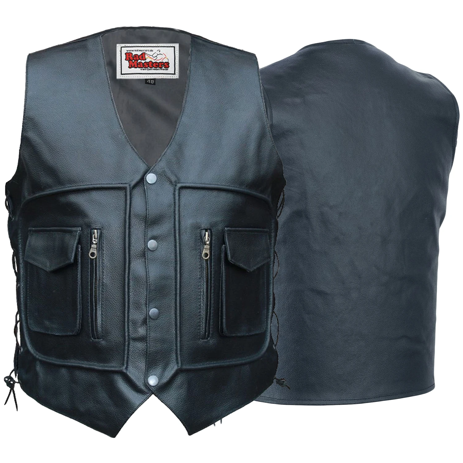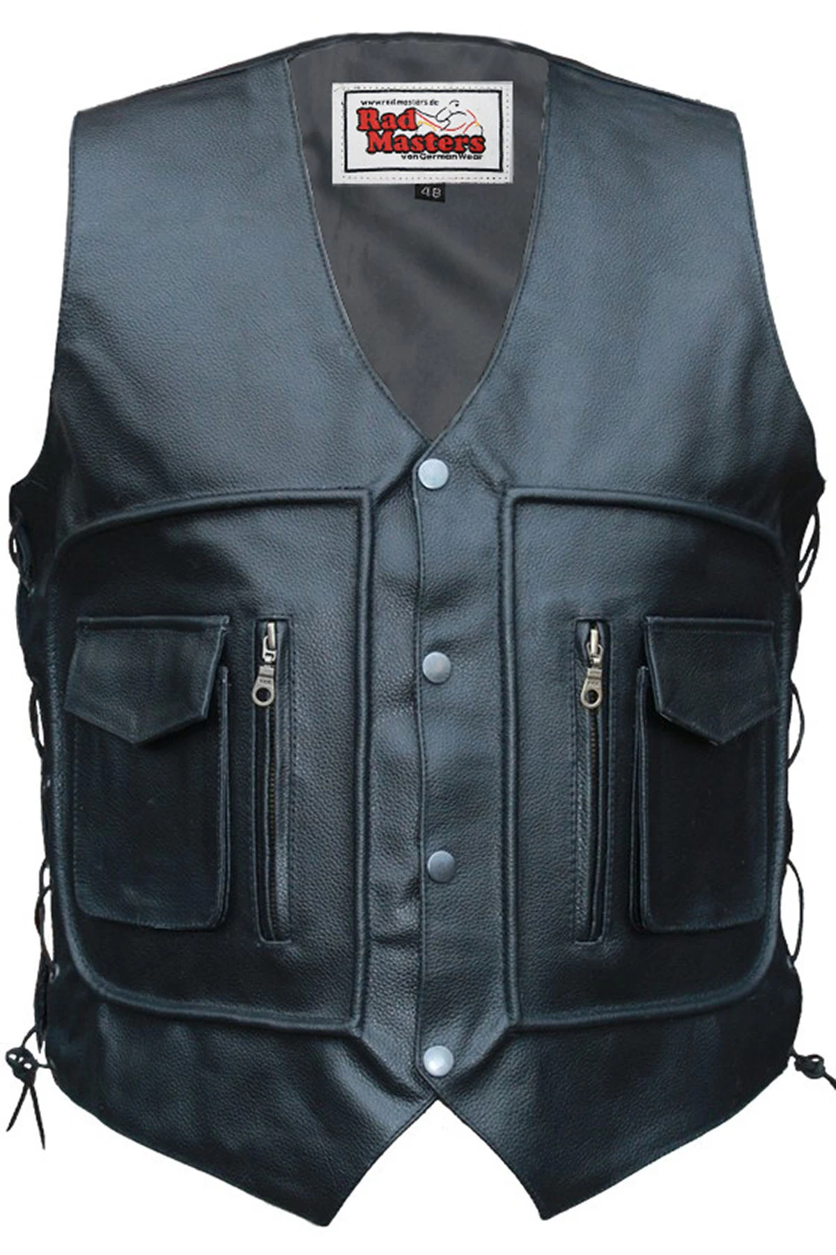 Motorrad Lederweste Aus echtem Rindsleder, Farbe: Schwarz, Glattleder