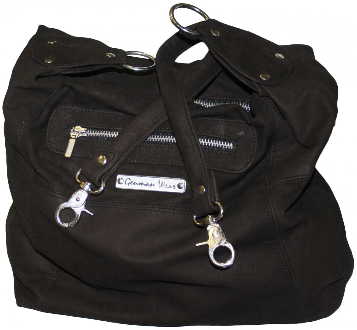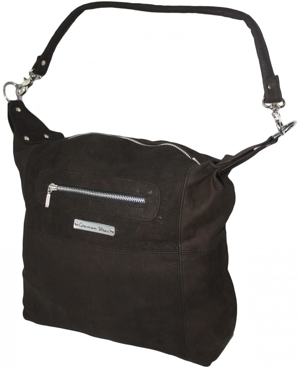 Trendige Beuteltasche Handtasche Shopper aus echtem Leder in dunkelbraun