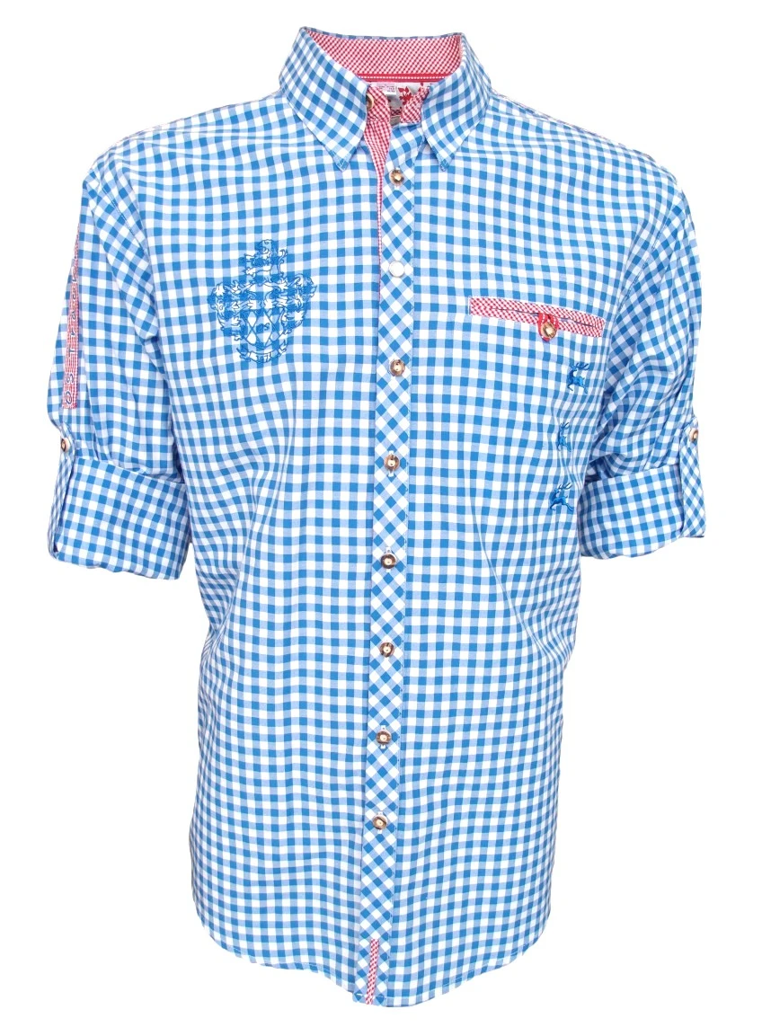 Trachtenhemd für Lederhosen mit Stickerei aus Baumwollmischgewebe, Farbe: Mittelblau