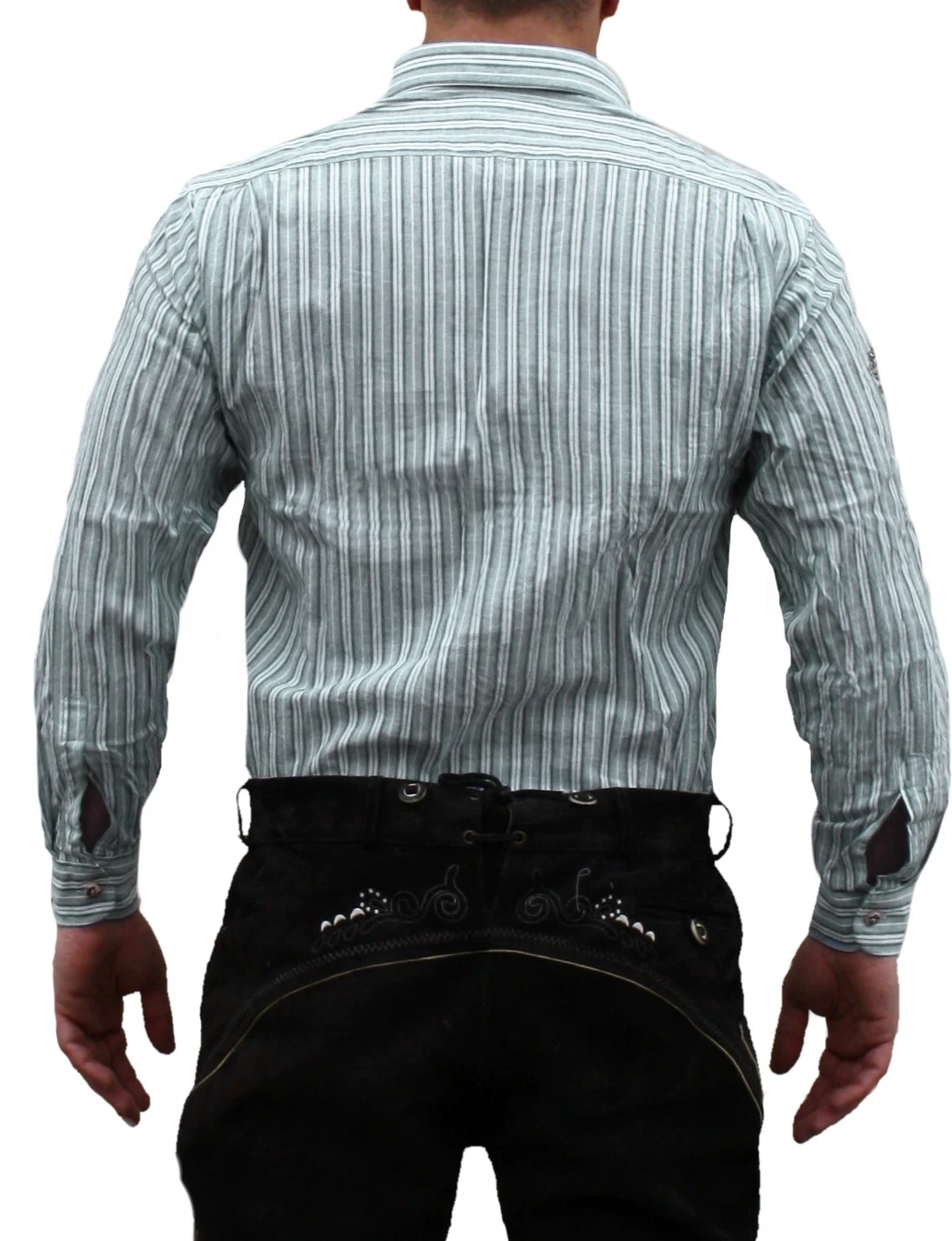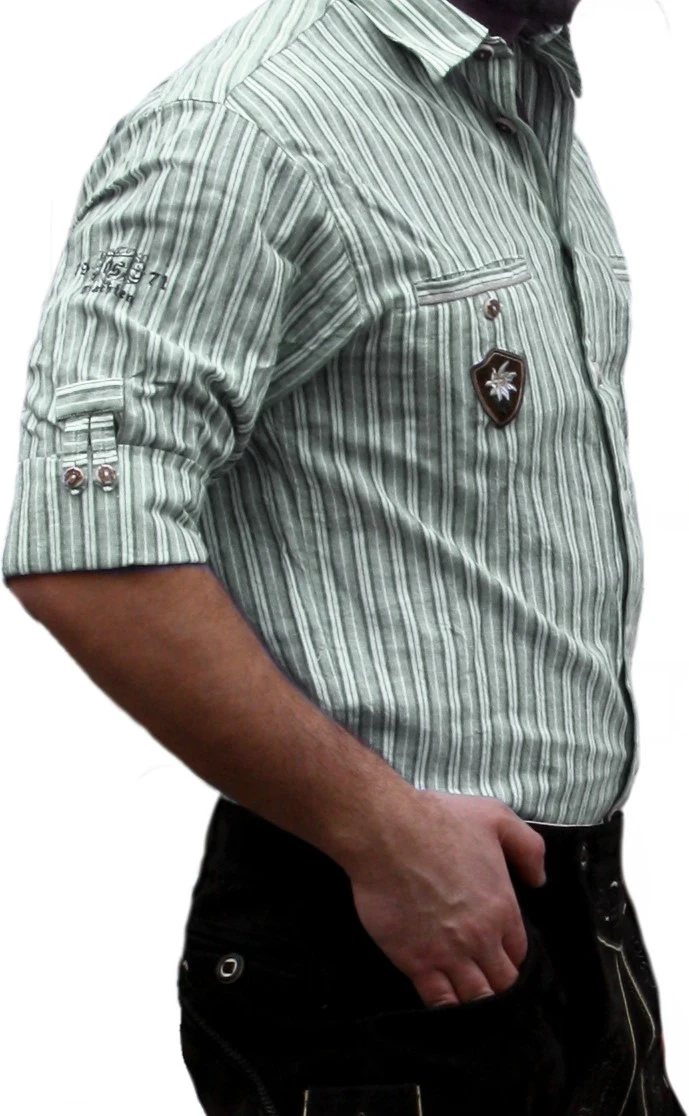 Trachtenhemd für Lederhosen mit Verzierung aus 100% Baumwolle, Farbe: Grün/Gestreift