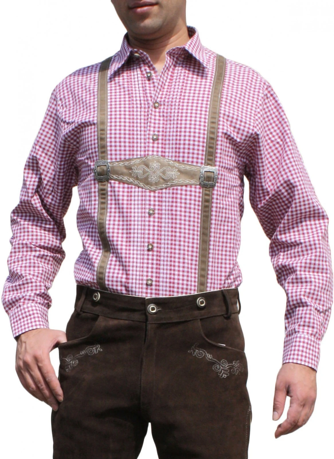 Trachtenhemd für Lederhosen mit Verzierung aus 100% Baumwolle, Farbe: Rot/Kariert