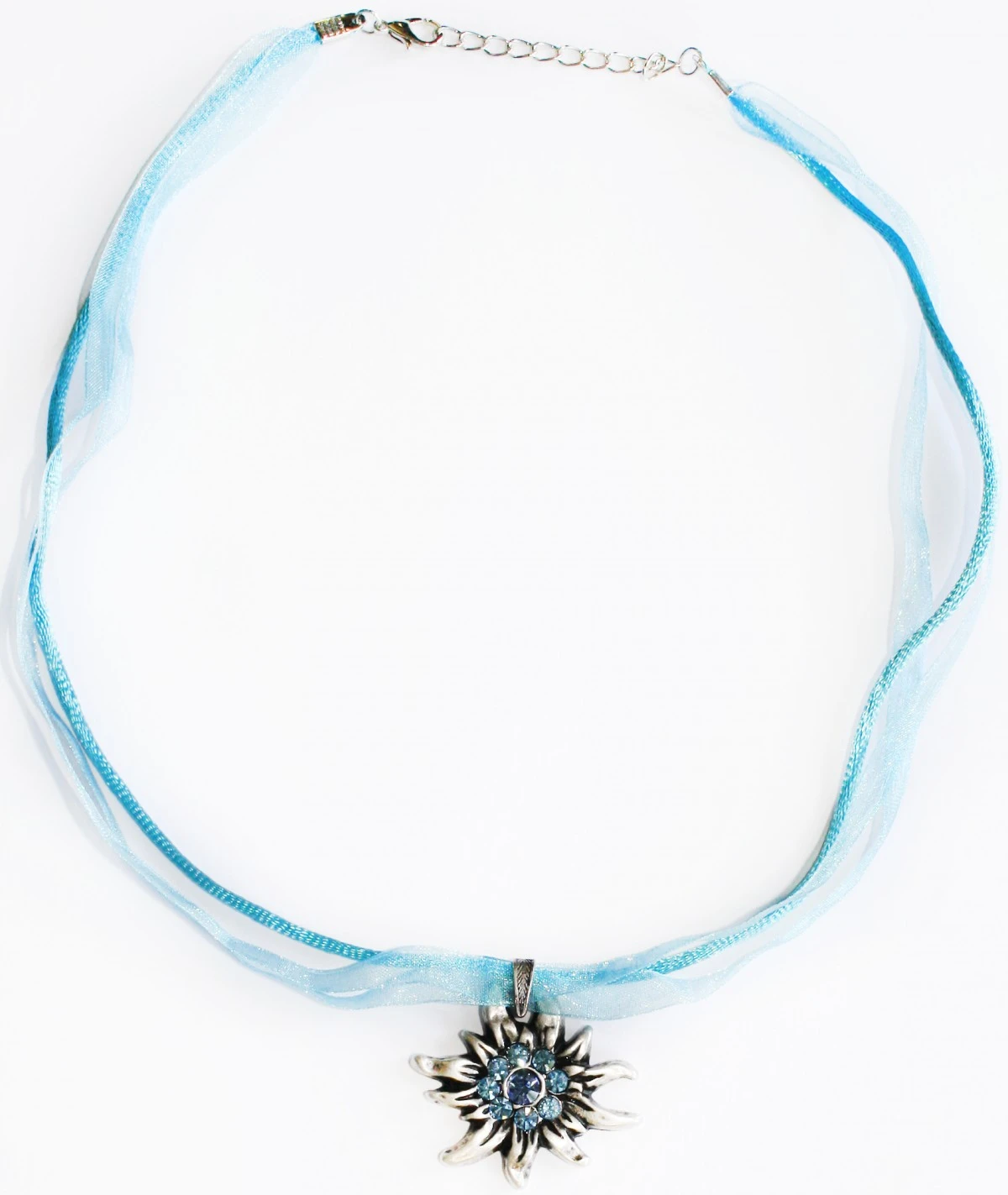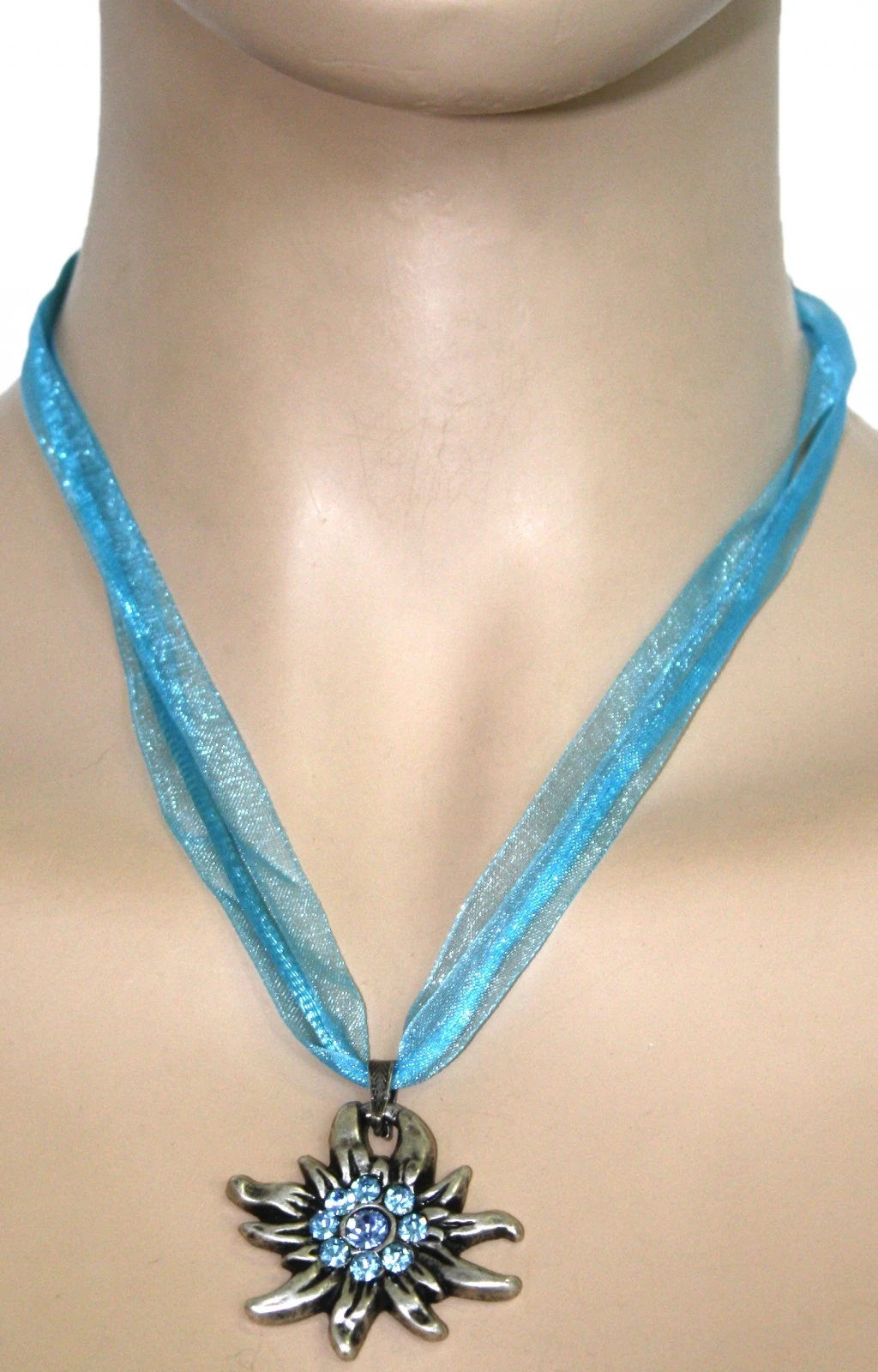 Trachtenkette aus Satin/Chiffon mit Strasssteinchen besetzem Edelweißanhänger