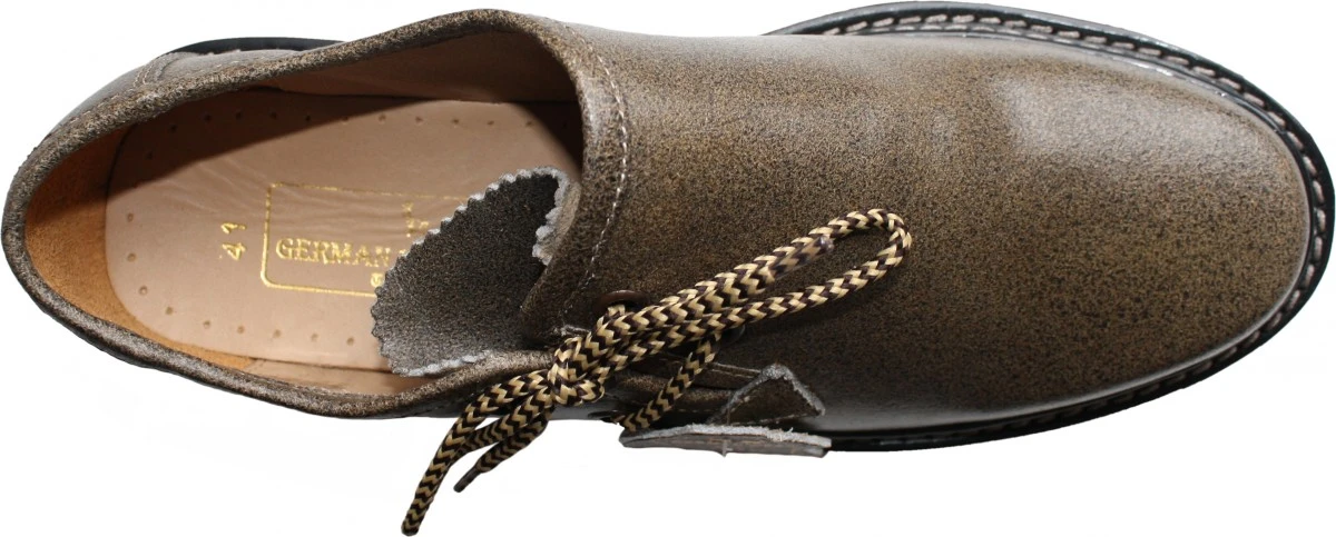 Bayerische Trachtenschuhe/Haferlschuhe aus echtem Cracked-Leder, Khaki/Gepunktet