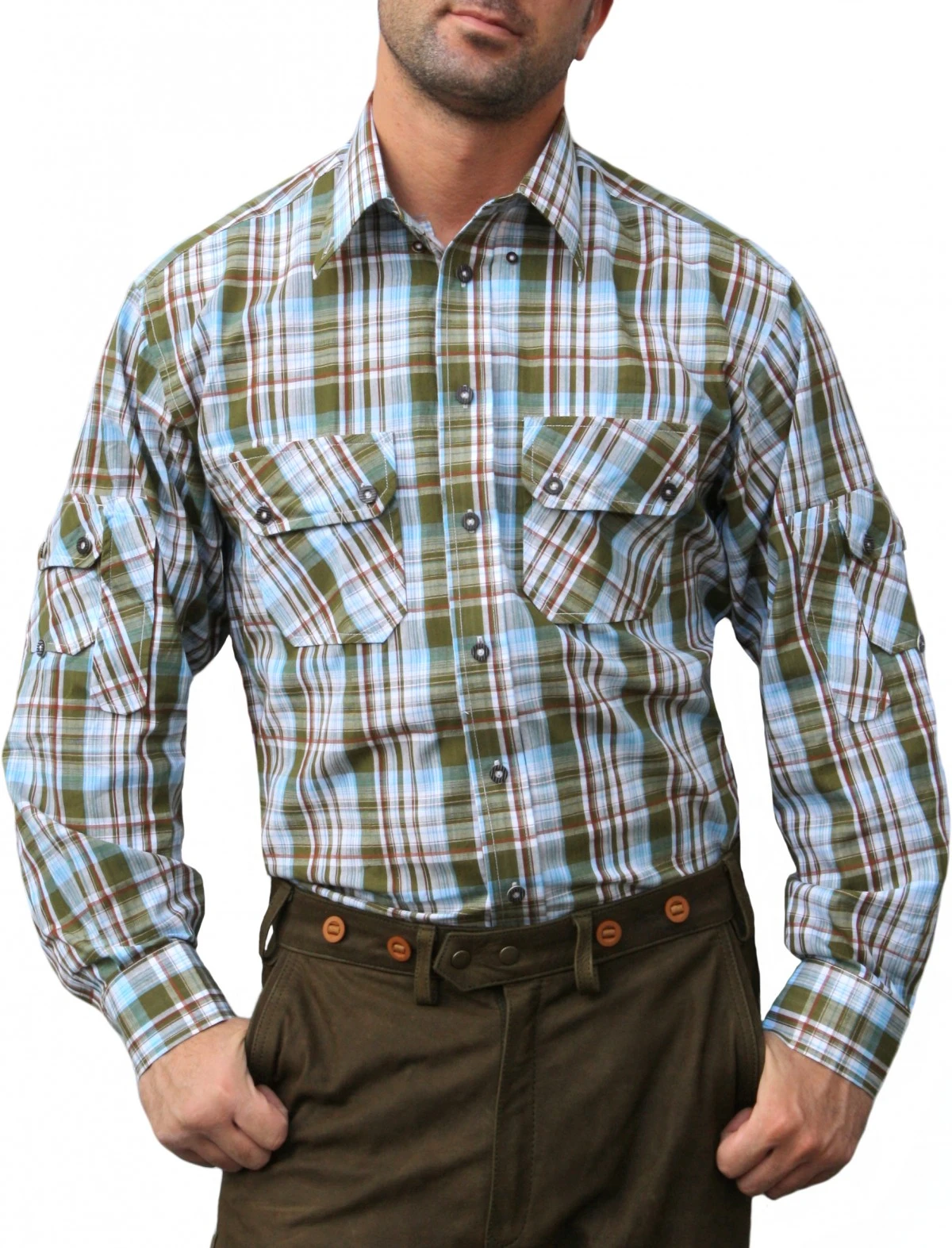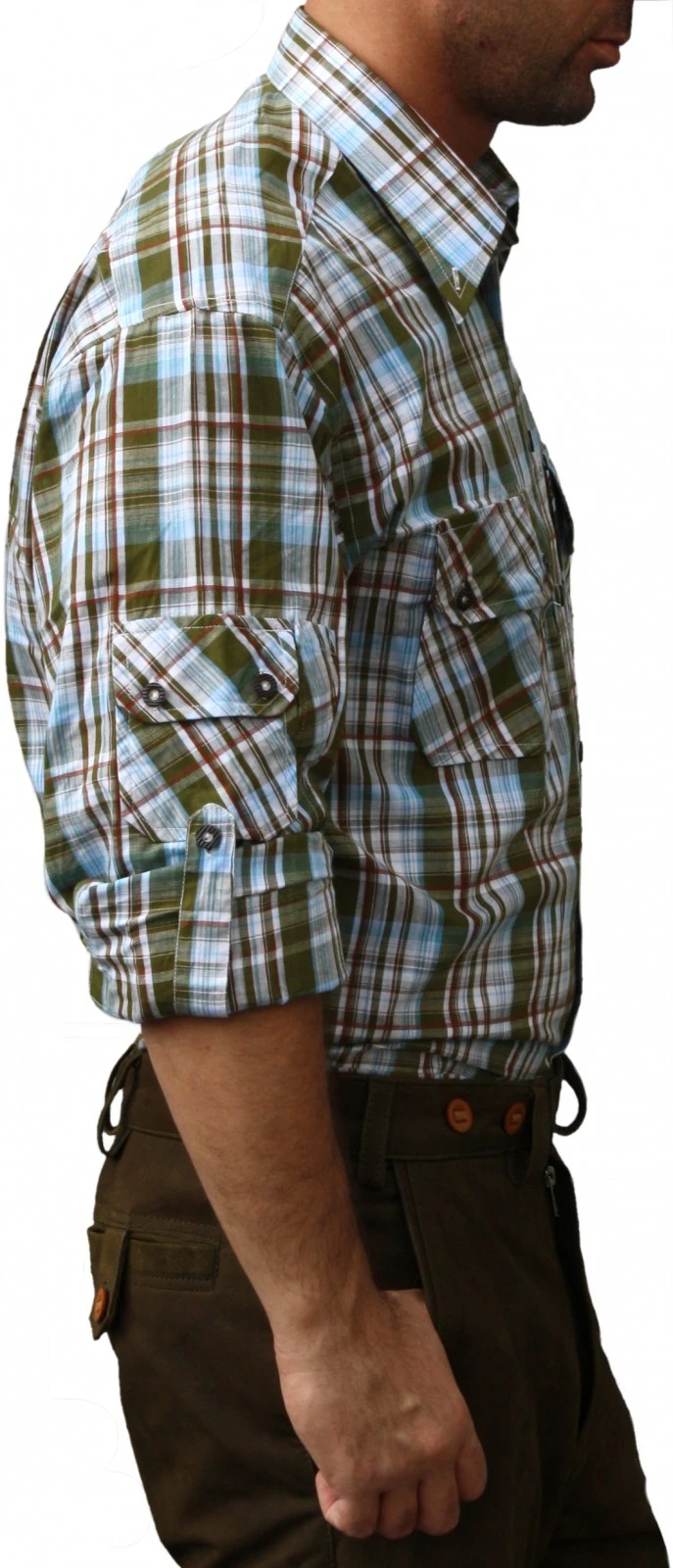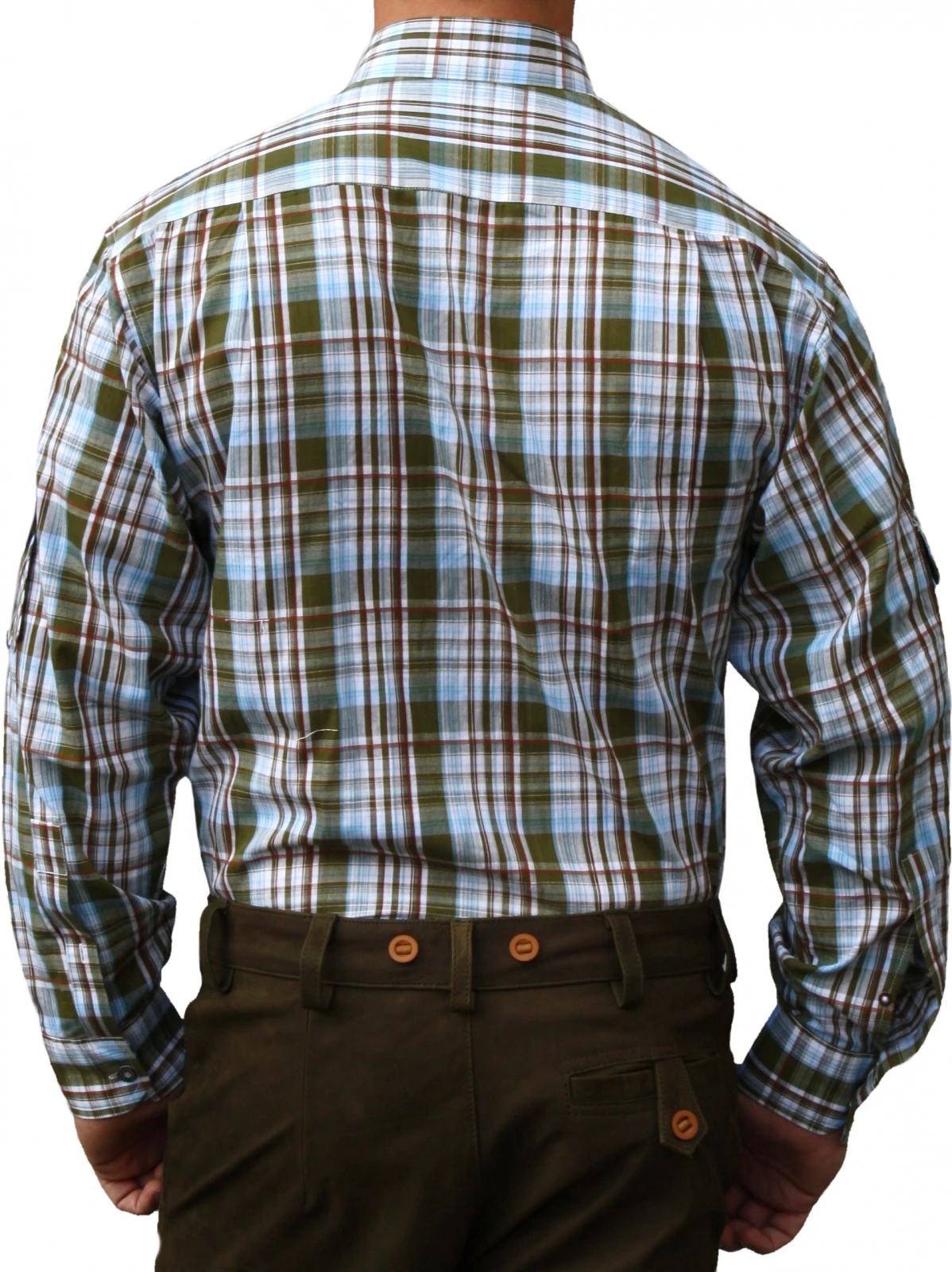 Jagdhemd aus Baumwolle Langarm in der Farbe Dunkelgrün/kariert