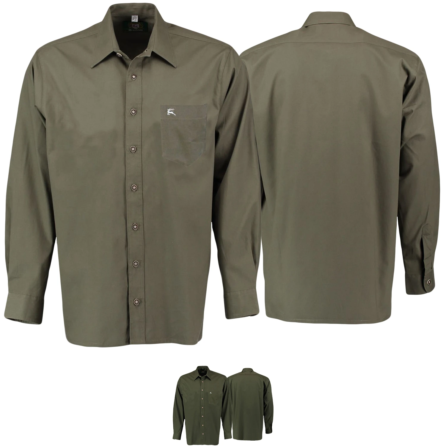 Jagdhemd aus Baumwolle Langarm in der Farbe Dunkelgrün/Tractengrün