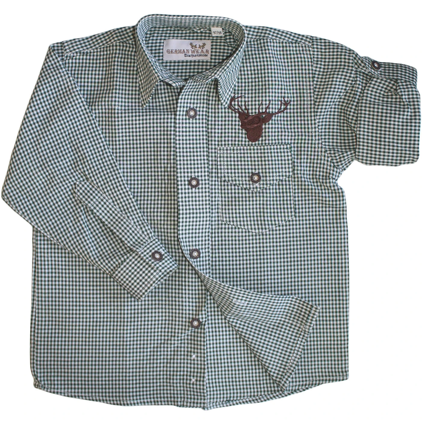 - Besitzt wunderschöne Hirschstickerei auf der linken Brust