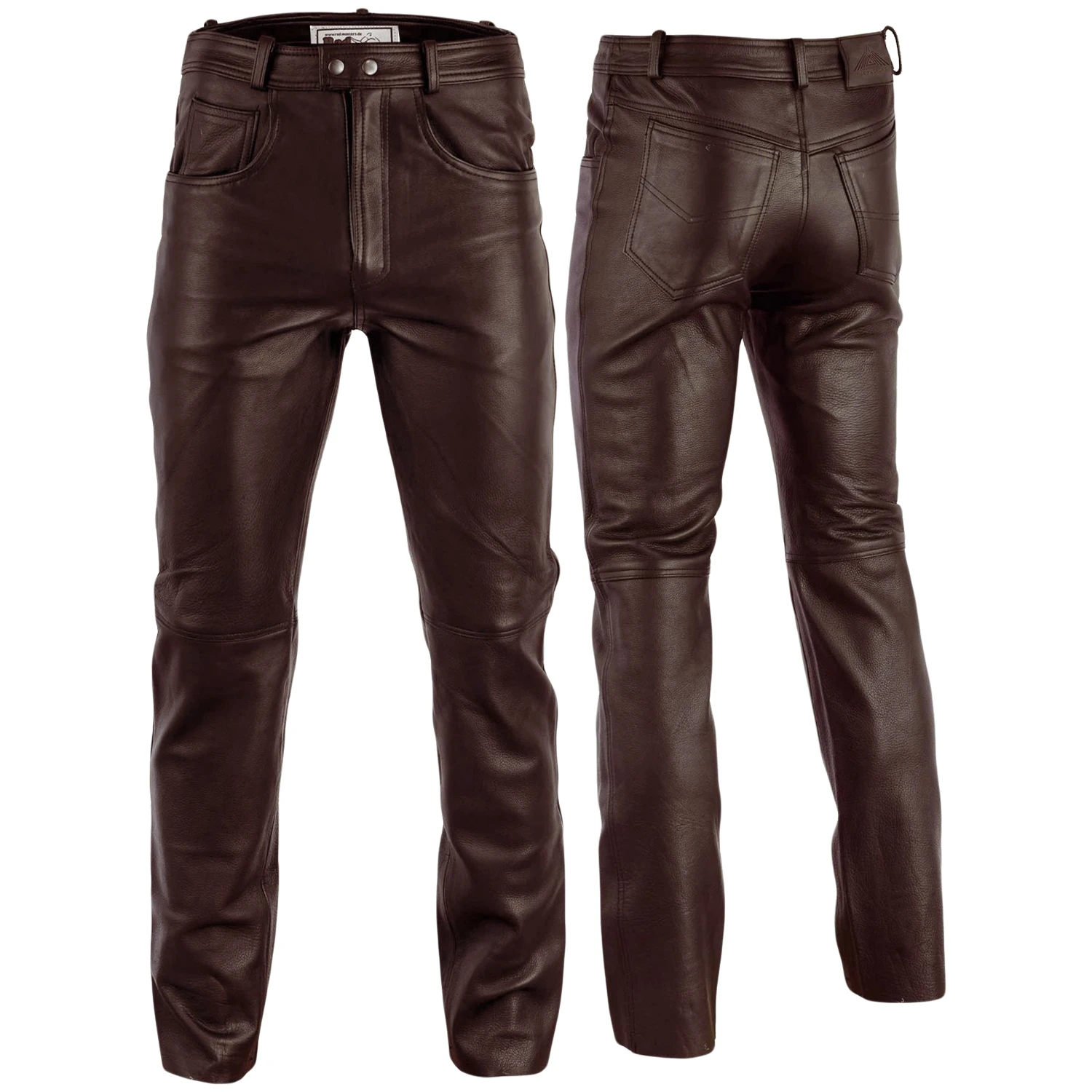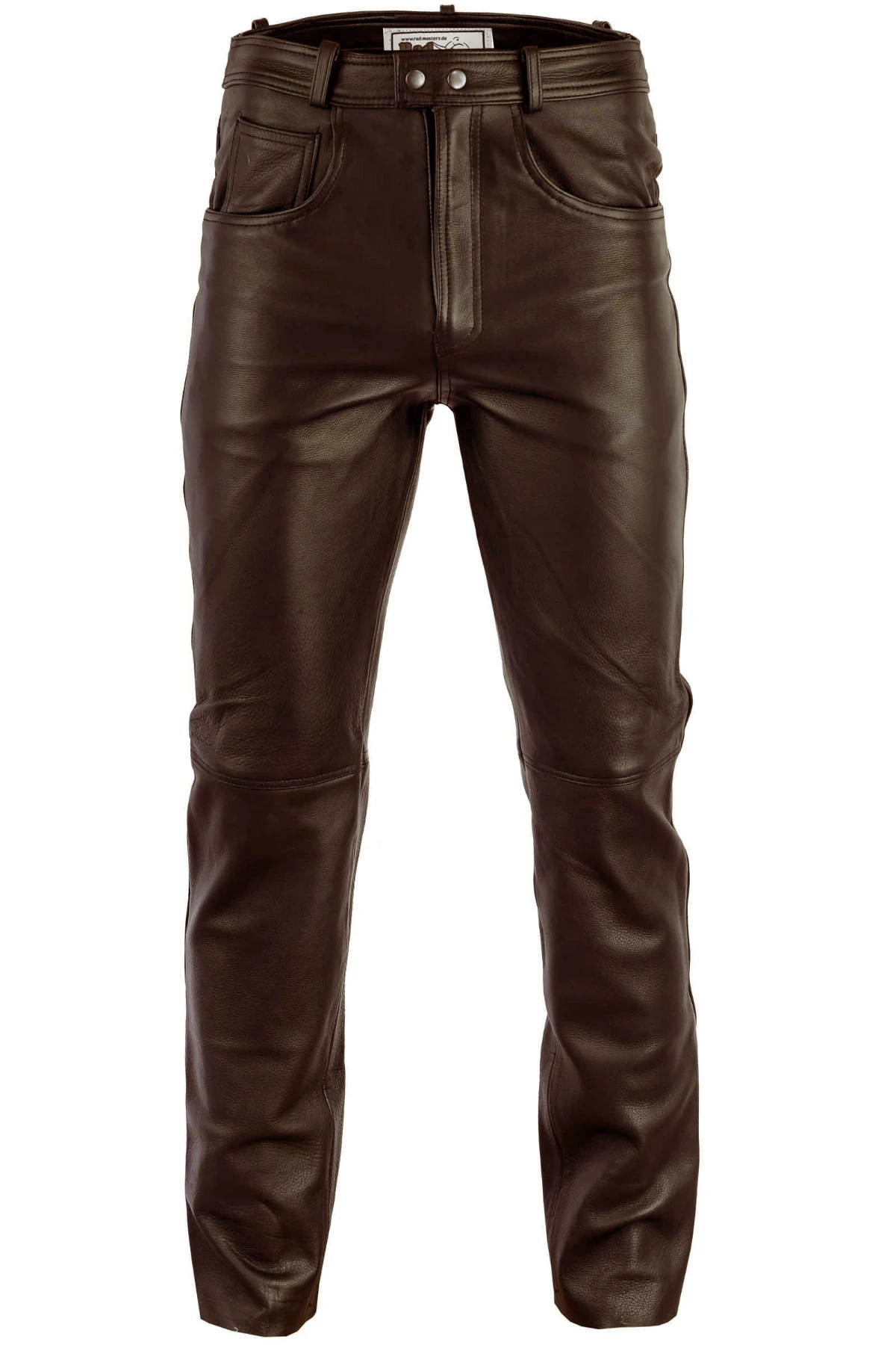 Stylische, glasierte/glazed/Glacéleder Lederjeans aus 100% Büffelleder , Dunkelbraun