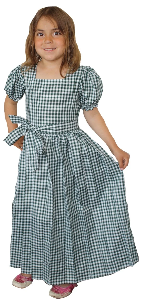 1 Teil Mädchen Dirndl (knöchellang) aus feinem Baumwollmischgewebe, in der Farbe: grün/weiß kariert