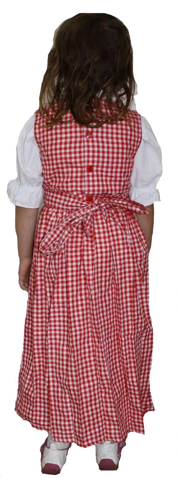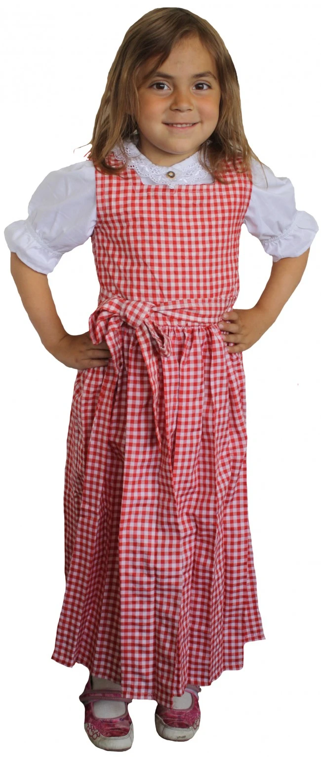 1-teil Mädchen-Dirndl (knöchellang) aus feinem Baumwollmischgewebe, in der Farbe: rot/weiß kariert