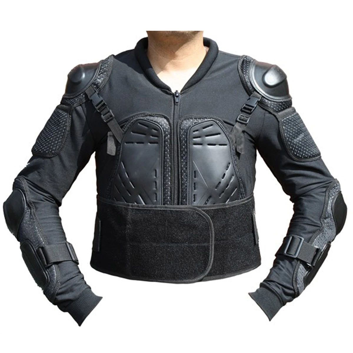 - Jackenteil hat 8 Protektoren: je 2 an: Brust, Schultern, Ellbogen, Unterarm