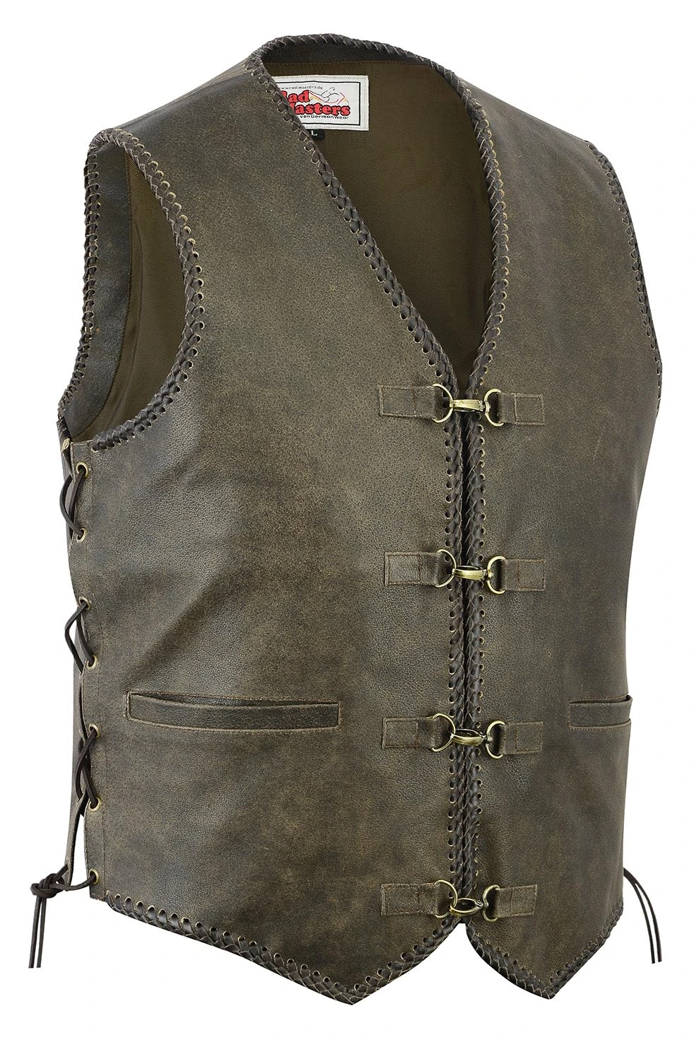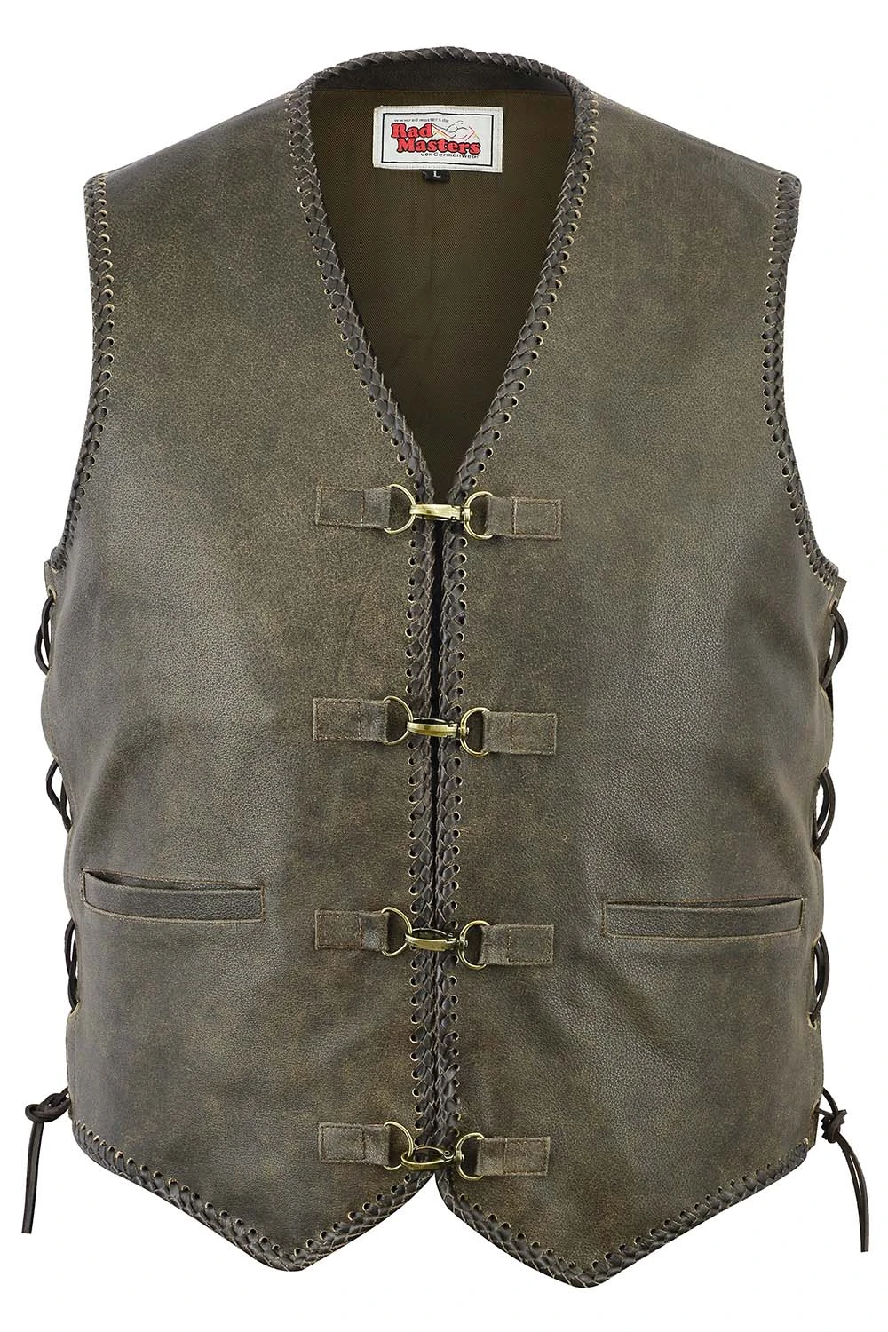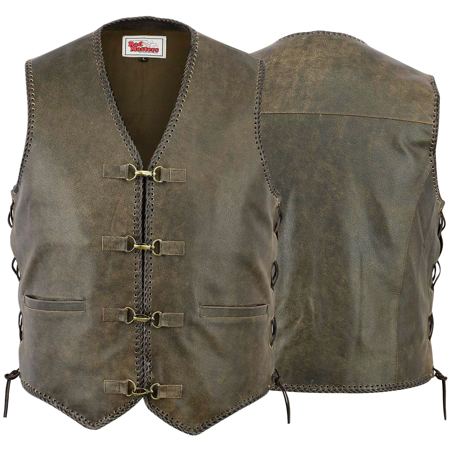 Motorrad Lederweste aus echtem Cracker Kalbsleder, Braun