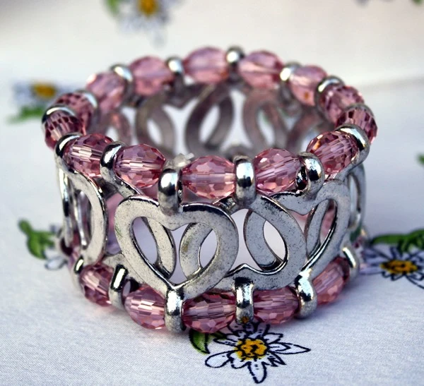 Trachtenarmband aus Metall und geschliffenen Glasperlen, Farbe: rosa