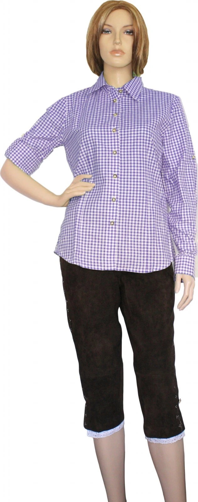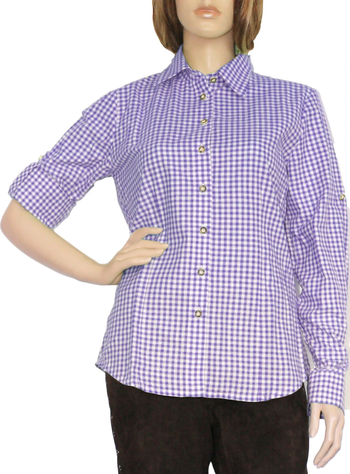 Trachtenbluse/Lederhosenbluse aus feinster Baumwolle in der Farbe: Lila/Kariert