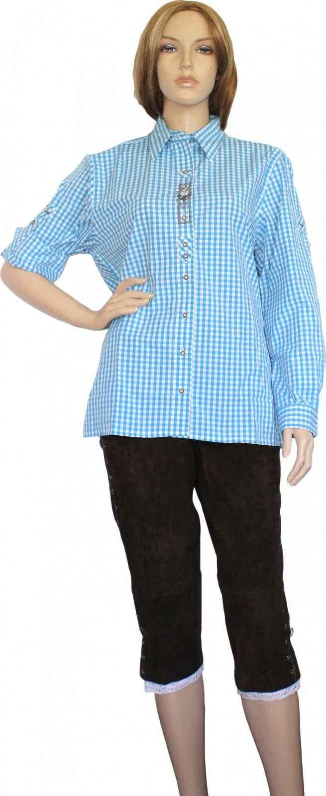 Trachtenbluse/Lederhosenbluse aus feinster Baumwolle in der Farbe: Türkis/Kariert