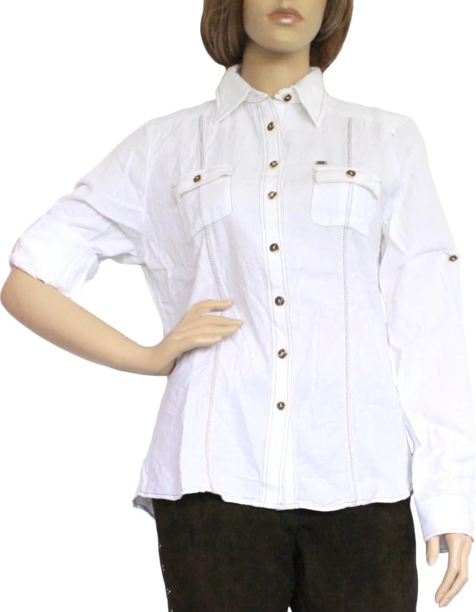 Trachtenbluse/Lederhosenbluse aus feinster Baumwolle in der Farbe: Weiß