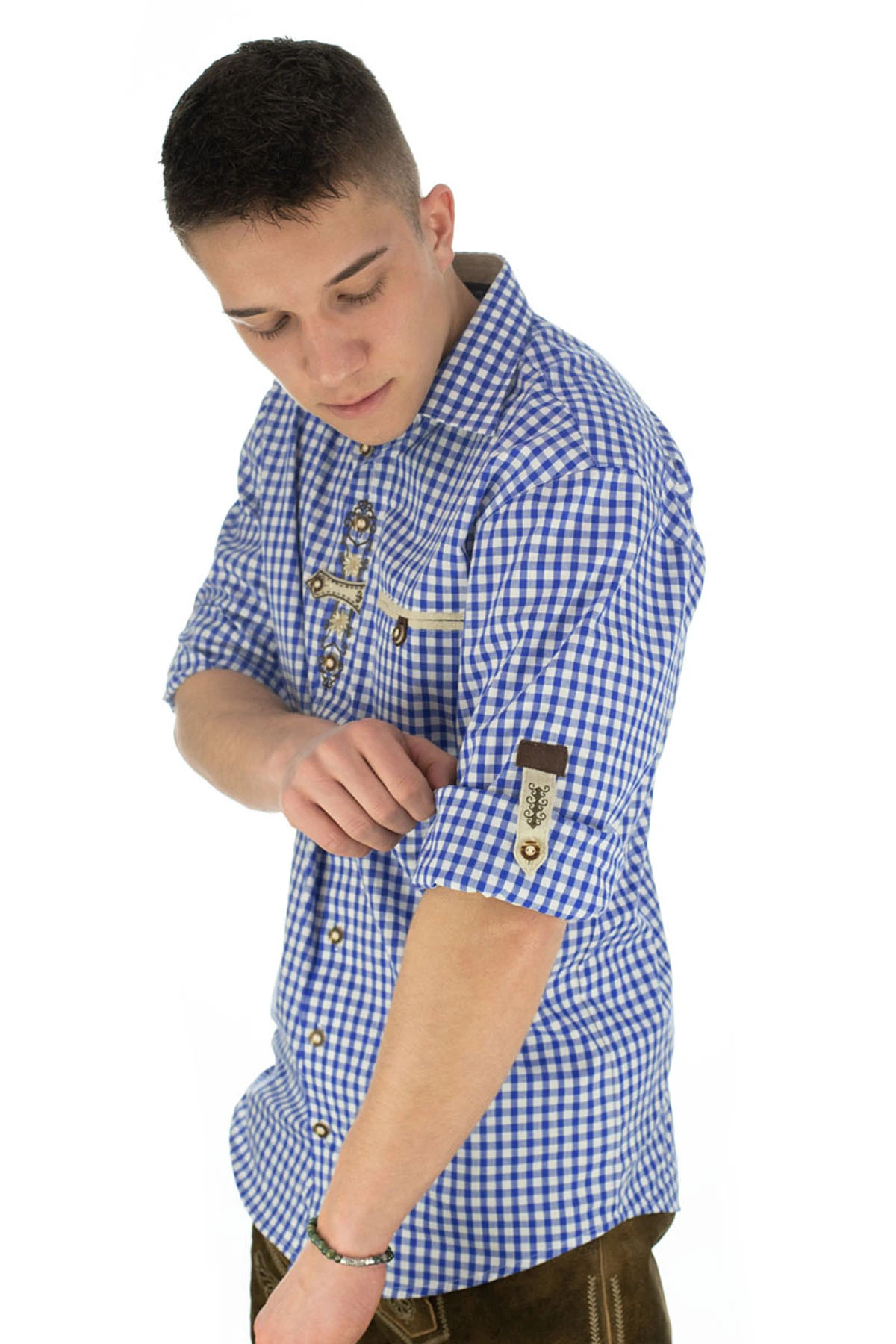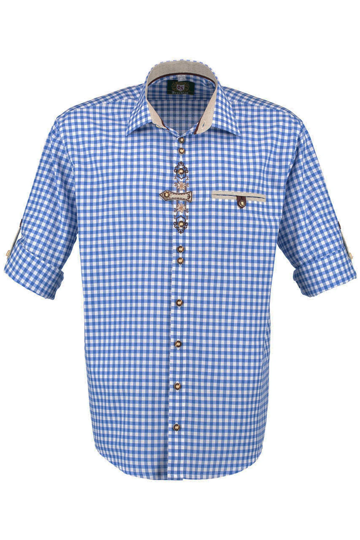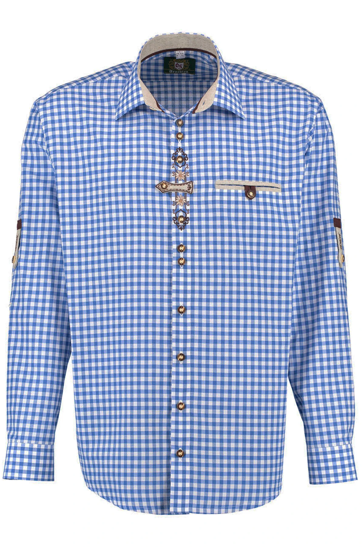 Regular fit Trachtenhemd für Lederhosen Langarm Trachtenmode mit Stickerei, Farbe: Rot / D.Blau