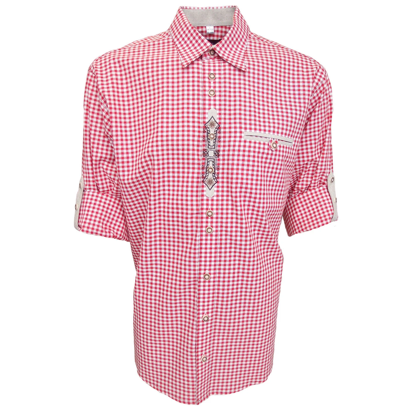 Trachtenhemd für Lederhosen mit Stickerei aus 100% Baumwolle, Farbe: Mittelrot