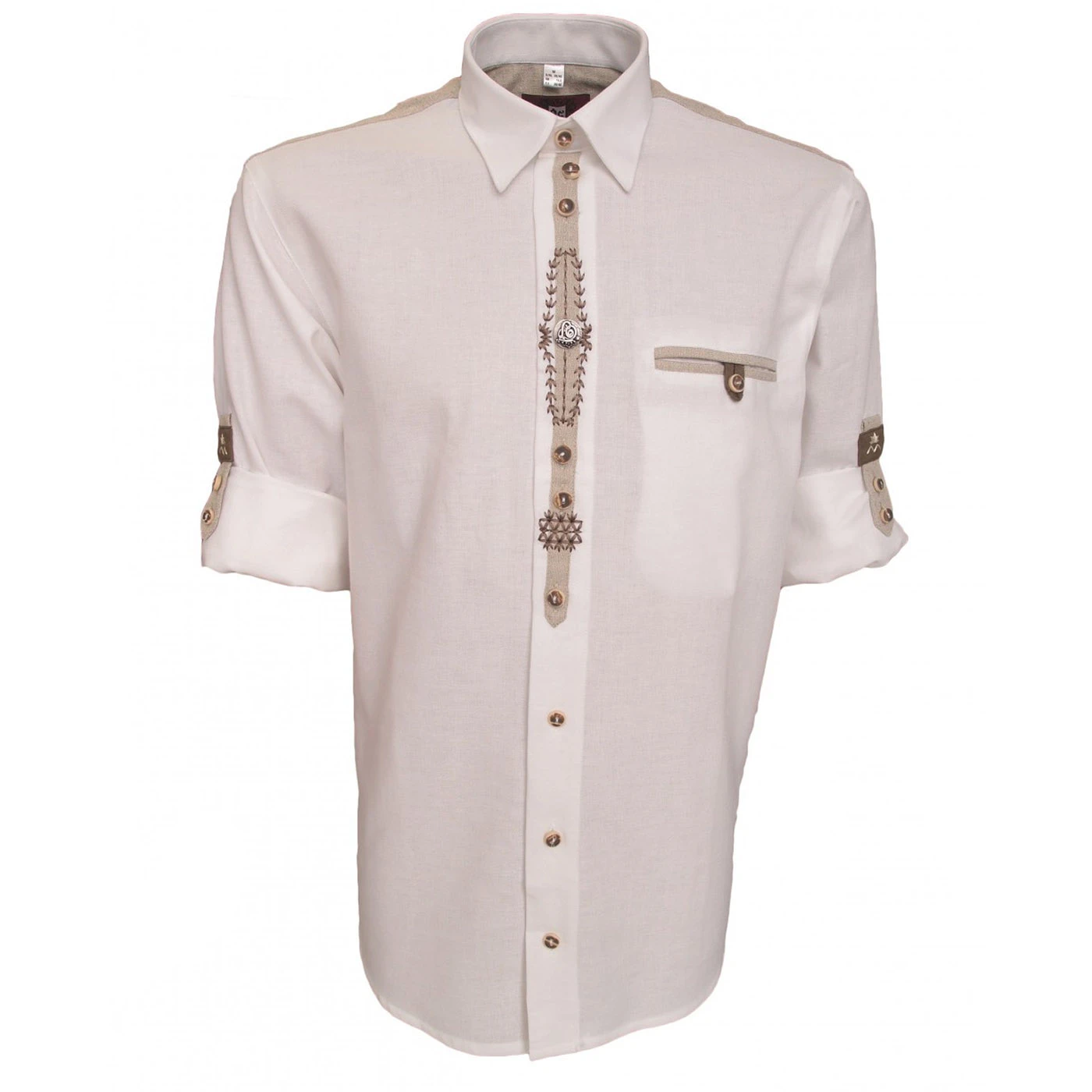 Trachtenhemd für Lederhosen mit Stickerei aus 100% Baumwolle, Farbe: Weiß