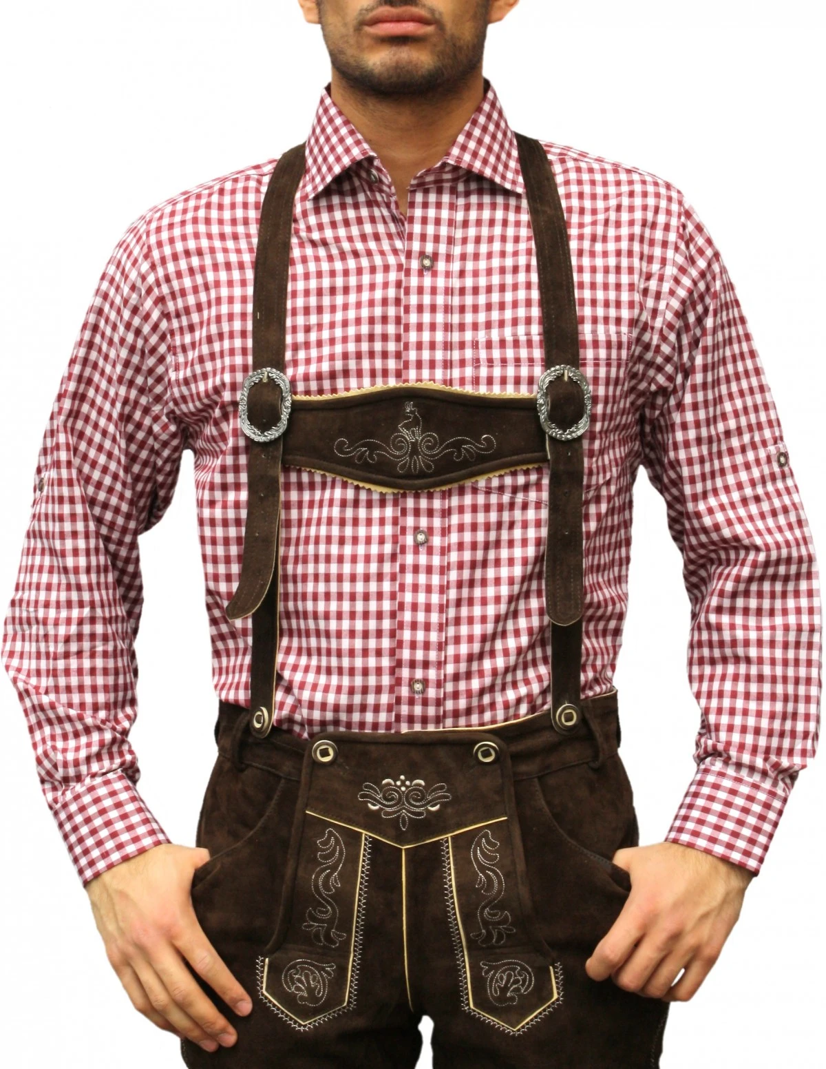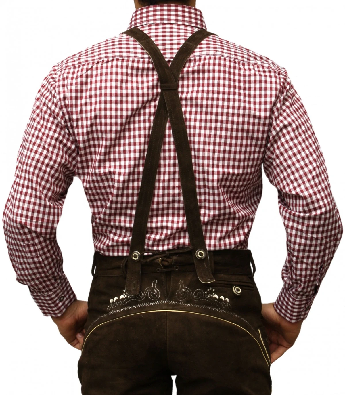 Trachtenhemd Langarm in der Farbe Beere/Kariert