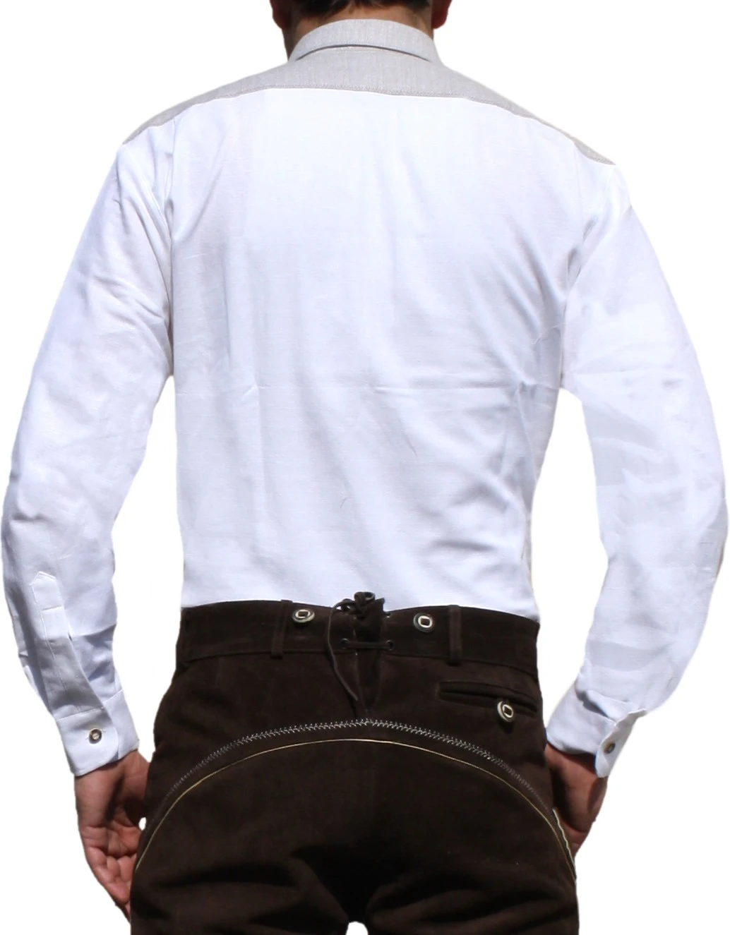 Trachtenhemd für Lederhosen mit Verzierung aus 100% Baumwolle in der Farbe Weiß