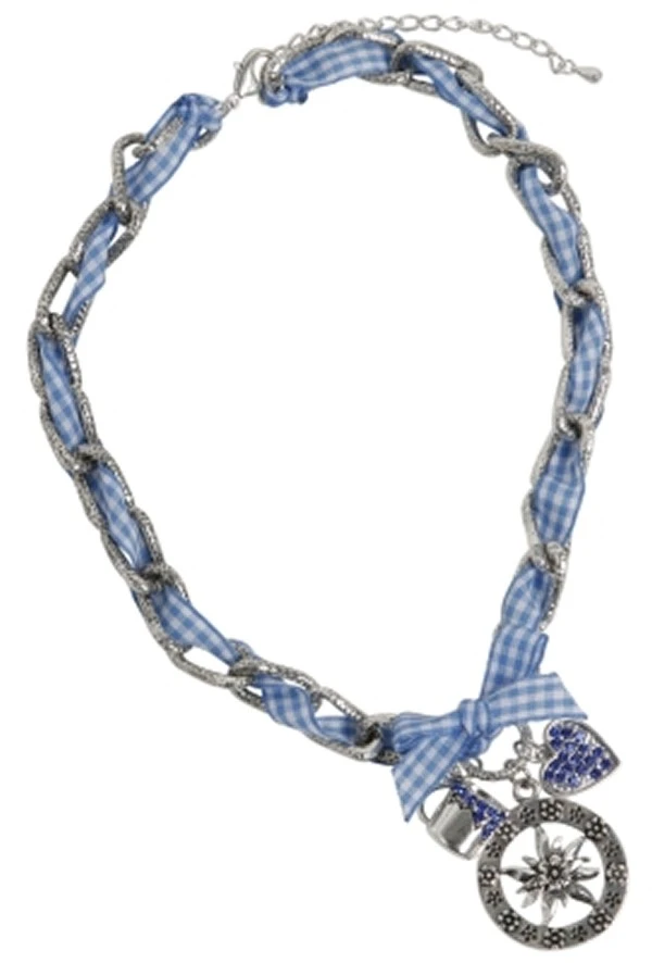 Massive Kette mit Edelweißanhänger aus Metall, Farbe blau, hellblau