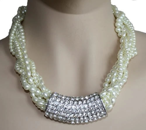 Mehrreihige Perlenkette mit großem Strassanhänger (ähnlich Tuchhalter)