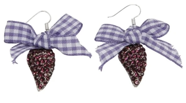Trachtenohrhänger Ohrringe mit Metallzahn, Schleife aus lila / kariertem Stoff